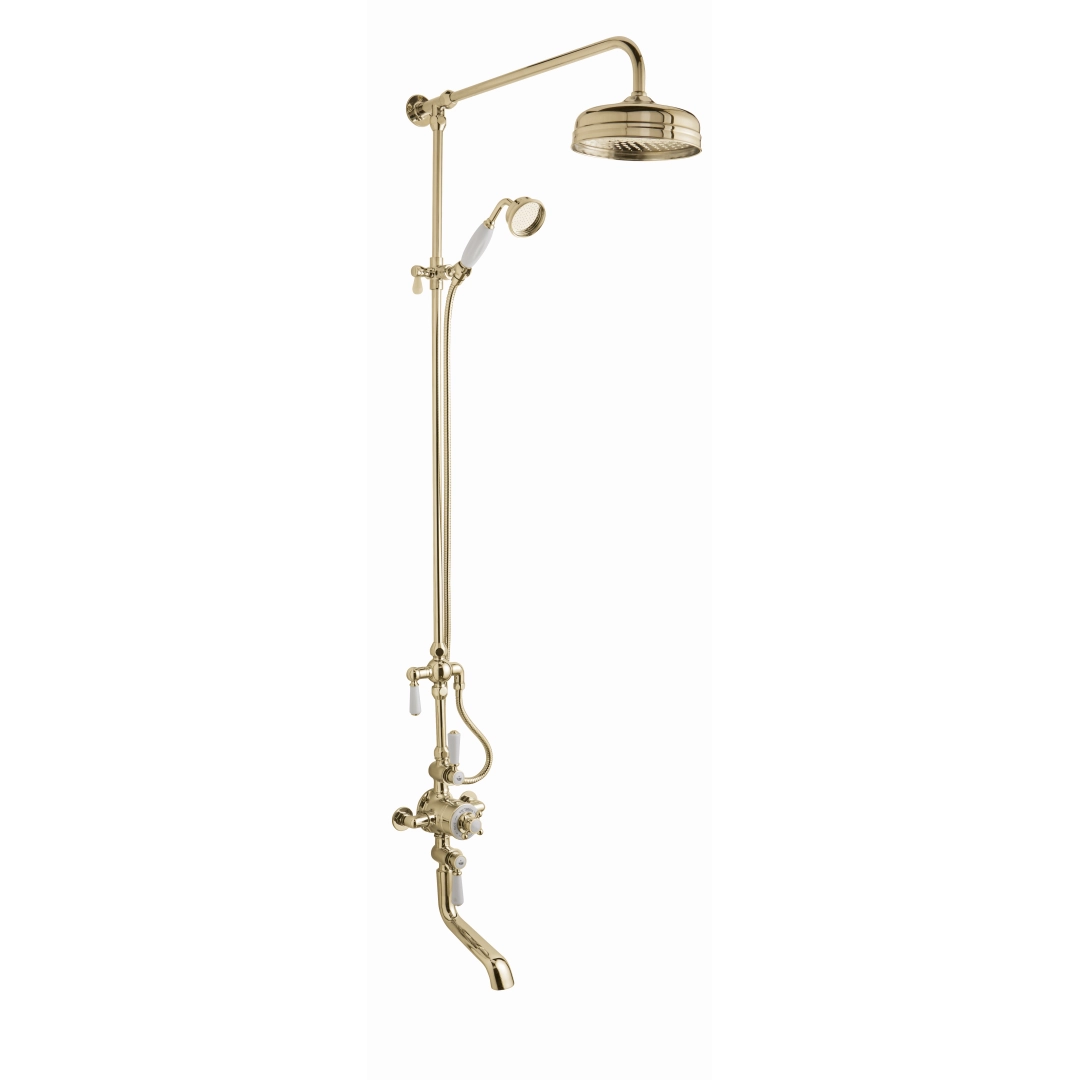 Victrion Triple Thermostatic Valve with 8″ Shower and Spout Bath Filler Gold