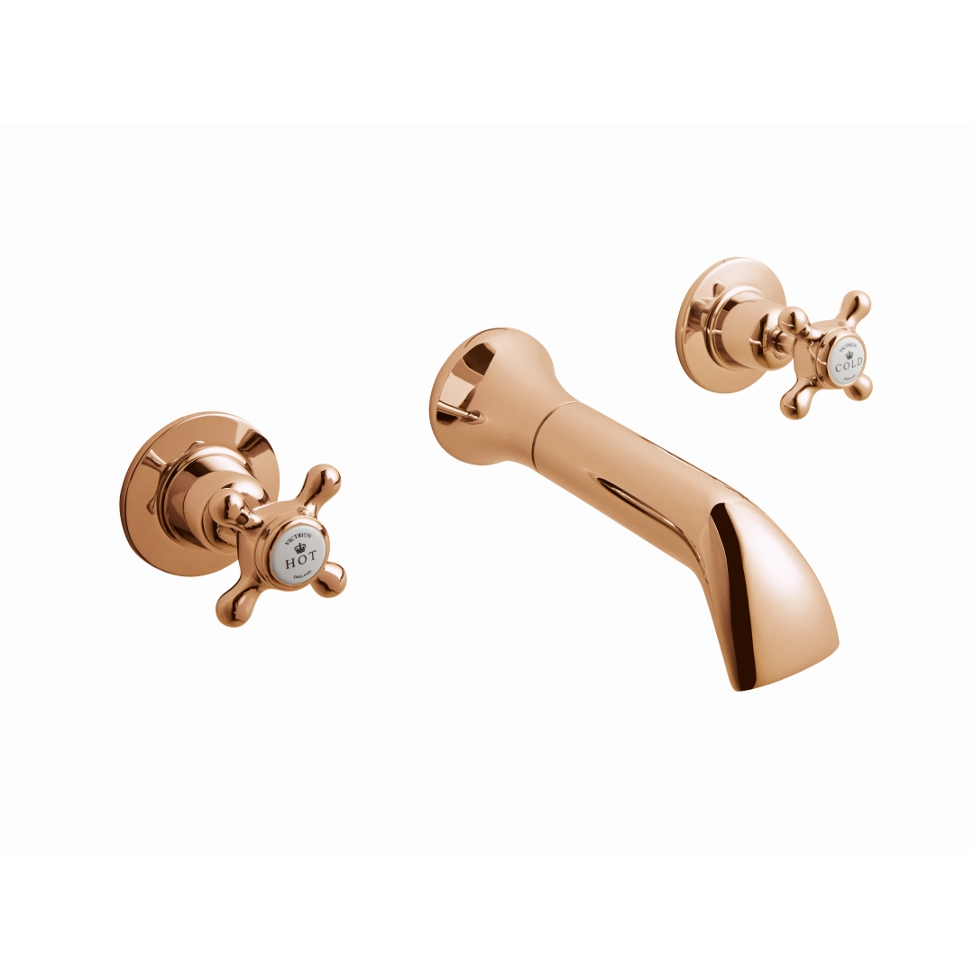 Victrion 3-Hole Wall Basin Filler With Spout Brushed Copper