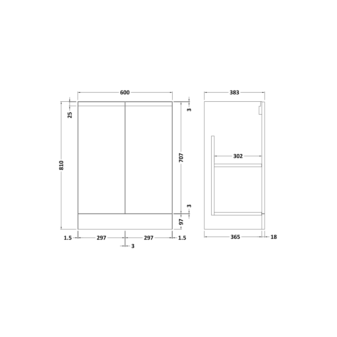 Ruban – Floor Standing Unit 600 MM, No Drawer, 2 Doors, Grey Satin